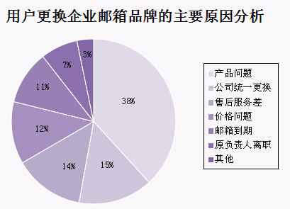 ? ? ? ?根據(jù)調(diào)查結(jié)果,約50%的受訪者,曾經(jīng)一次或多次更換企業(yè)郵箱品牌,原因與產(chǎn)品問(wèn)題、售后服務(wù)問(wèn)題、價(jià)格問(wèn)題、郵箱到期等有關(guān)。