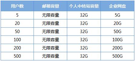 1、用戶數(shù)、郵箱容量,個(gè)人中轉(zhuǎn)站容量和企業(yè)網(wǎng)盤(pán)容量不同