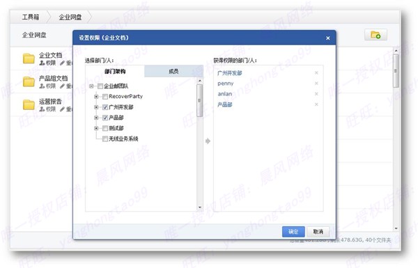 ?????企業(yè)網(wǎng)盤是用于企業(yè)內部共享文件的網(wǎng)絡硬盤,成員上傳文件至企業(yè)網(wǎng)盤后,企業(yè)的其他員工即可看到該文件,例如上傳一些公司的集體活動照片,公司的制度文檔等需要共享的資源,成員登陸郵箱后可下載分享,也可以對企業(yè)成員設置權限分配。將根文件夾分配給不同的部門,或成員使用。
