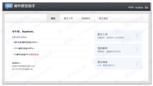 ?????幫助企業(yè)用戶便捷地向客戶批量發(fā)送郵件,具有速度快,到達率高的優(yōu)點,保證郵件的有效性。企業(yè)批量發(fā)送業(yè)務通知,新品推廣,會議邀請等不再是難題。編輯好郵件,上傳收件人列表后,一鍵發(fā)送即可。還能實時跟蹤發(fā)送進度、用戶情況等細節(jié)。